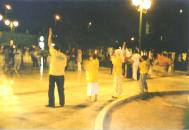 当我们步行到达那里的时候,我们看见许多警察。我们问他们发生了什么事。我们惊讶地得知希腊总理将到这里演讲。当然,所有的国家电视台都来到这里。因此,我们决定要抓住这个机会演示功法。事后人们告诉我们说,他们在电视上看到了我们。