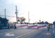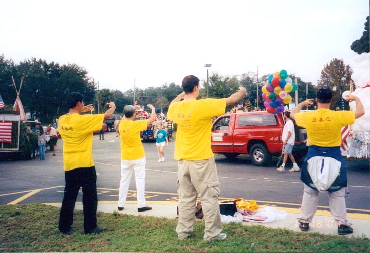 【明慧网2001年11月30日】11月18日,奥兰多的弟子参加了冬泉市(City of Winter Springs)的圣诞大游行。由于当天还有其他的洪法活动,只有六名弟子参加游行,可人少也是一样的。