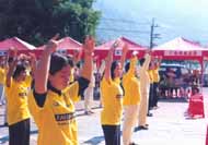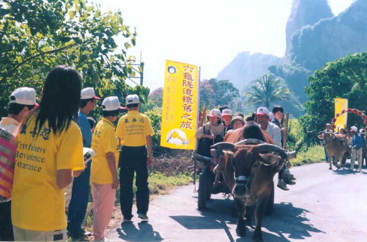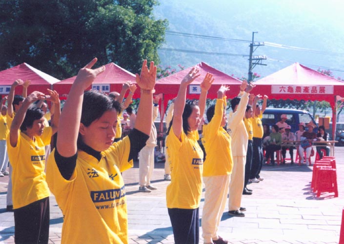 大法弟子约五十余人参加了这次高雄县六龟乡的隧道怀旧之旅,在开幕式结束后接着就是大法弟子的炼功表演,大法庄严的炼功音乐和大法弟子演炼五套功法,把大法深植在这纯朴乡村的每一位在场的乡民内心深处,同时也都和他们结了很深的缘份。炼功表演结束后,大法弟子紧接着就开始着积极徵签和讲清真象的工作,大法弟子所体现出来的善和人们表现着善良、正的一面相呼应,整个会场都笼罩在祥和的气氛下,过程也都非常顺利和圆满。