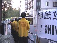 所有的警察和路人及附近居民,都在认真聆听。特别是我们广播一位大陆学员在法庭上的陈词《无憾》时,空中安静极了,后面展示功法的学员都被感动得哭了,周围的人安静地聆听,我突然感到败物正在消亡,新的一切就是在忘我的境界中产生,从无形到有形。警察向我们索取了大法资料,有的主动上前向我们了解法轮功,还有的表示要学功。很多人告诉我们说“我们喜欢听法轮功的音乐,听后很平静”。学员回答说:“这是我们炼功的音乐。这么好的功法,这么善良的人群,在中国却没有一个角落允许炼功,我们在海外四处求救,实在令人感慨!",当一些警察得知,我们当日当场的学员中,很多都是英国名牌大学的博士毕业生、有的是电脑企业的主管、高级技术专家、大学讲师、金融专才等等,非常惊讶和感动:世界上有这样一群人,愿为自己的信仰,如此默默付出。