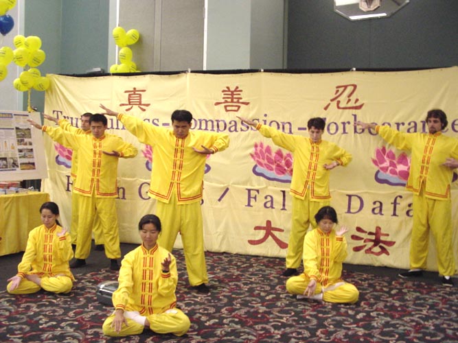 这次活动的组织者也参加了炼功,她和其他俱乐部的负责人都说他们会再请学员们在大学办法轮功学习班。