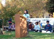 抗议群众特别谴责在法轮功的发源地长春市,竟然对法轮功学员判决无期徒刑。曾经因为在深圳探望法轮功学员而被捕并被强迫劳动的赵晨,代表湾区二十多位曾经在中国大陆被捕的法轮功学员发言。