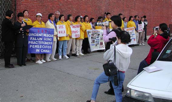【明慧网2001年11月9日】为了向伊利诺伊州人民介绍法轮功;为了讲清中国大陆江泽民集团残酷镇压法轮功的真相;为了紧急呼吁立即释放中国马三家劳教所正在绝食的130位法轮功学员;为了紧急呼吁立即释放被非法判刑三年的美国永久居民滕春燕医师──