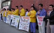 加拿大渥太华学员11月5日中午,赶往中国驻加使馆,呼吁“停止对长春法轮功学员的迫害”。