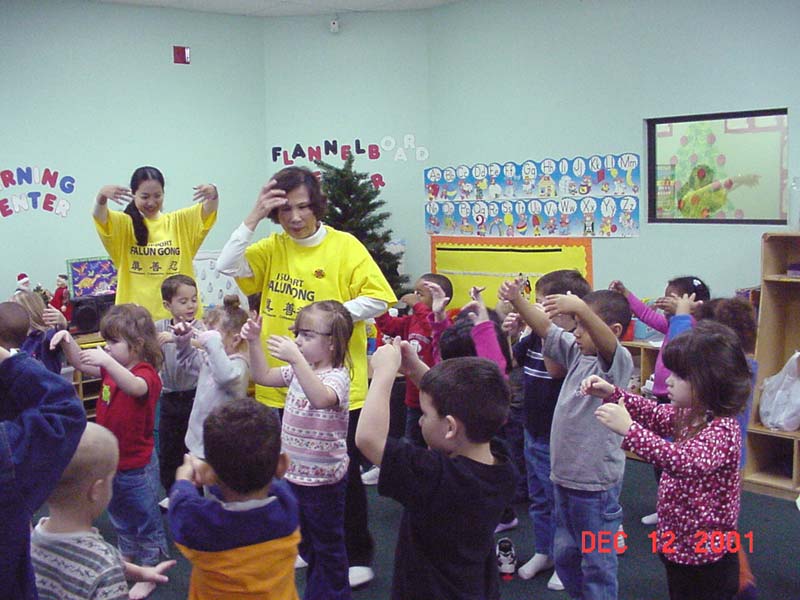 早在2000年5月2日,联合城的市长(TOMMY FRANKOVICH)就颁奖宣布2000年5月13日为世界法轮大法日。为了让更多的市民了解,认识法轮功,特别是能把“真善忍”的种子播撒入美国少儿的心田,法轮功学员不失时机的把法轮佛法介绍给这里的孩子们,在法轮功炼功音乐的伴随下7位法轮功学员演示了五套功法,深得孩子们以及老师们的喜爱,孩子们围坐在学员们身边,一遍一遍的学习,并不时的用稚嫩的童音告诉学员们“I LOVE YOU”(我爱你),意义深长,有的孩子告诉法轮功学员回家后要把今天听的看到的法轮功告诉父母亲。儿童是国家的未来,是国家未来的缔造者,他们在品德方面,知识方面,体质方面,是否能获得良好的发展,这与现在孩子们从小获得的教育有密切的关系。