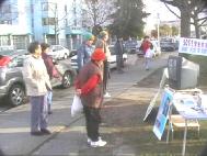 12月9日,温哥华大法弟子在唐人街进行了大型集体炼功和讲真相活动,壮观的炼功场面、学员们祥和的神态和讲真相的电视、展板及大法标语,吸引了许多人观看,前来了解真相。