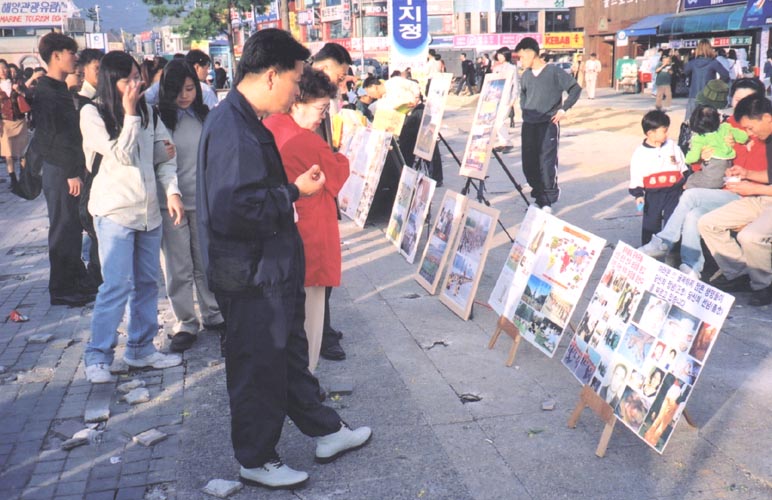 继10月3日在汉城针对数万来自中国的在韩朝鲜族讲真相的活动后,韩国学员又开展了一次颇有声势的全国性正法活动。此正法活动有几个特点:摆脱至今集中人力只在重点城市开展正法活动的局面,以汉城、大邱、釜山、光州、大田等地学员为中心向周围小城市与农村洪法,大大地开拓了正法活动的范围。广大学员们走出来参加正法活动的积极性空前高涨,全国共组成13个小分队,共拷贝了10万张大法传单,比较充分地准备了大法图片,横幅,车辆等等。