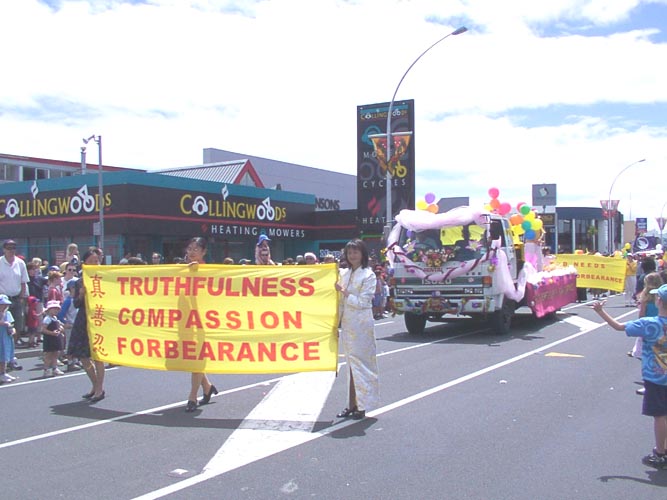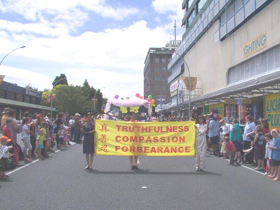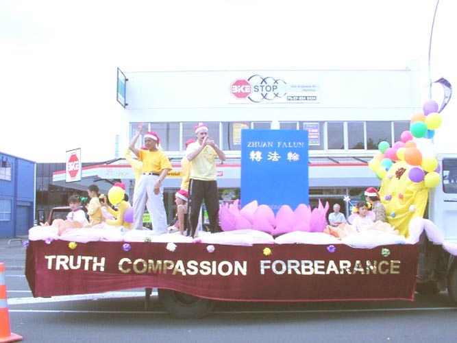 【明慧网2001年12月16日】得知奥克兰(Auckland,NewZealand)学员制作了大型莲花座圆满地参与了各地区的圣诞游行后,在他们的鼓励下,我们汉米尔顿(Hamilton)学员也积极争取机会参加当地类似的圣诞游行。带着把大法的美好藉由圣诞游行传递给世人的正念,我们很顺利地破例在游行前一星期,报名早已截止的情况下,获得参与许可。