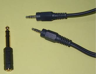 注意:一般的录音机或音响上的麦克插孔比较大,这时音频转换插头就派上用场了,将音频线需要插入录音机的那一端与音频转换插头连接在一起,再将音频转换插头插入录音机的麦克插孔。如果录音机的麦克插孔和声卡上耳机插孔一样大小,则将音频线直接插入即可。我使用的是“步步高”语音复读机,就可以直接插。
