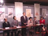 | 日本国会众议院议员牧野圣修在记者招待会上发言 | 在记者招待会上章翠英介绍了在中国遭到8个月迫害的经历 | 小弟子向章翠英女士献花 |