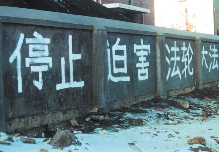 在大街小巷,宣传栏板及居民楼内,各式大法条幅、标语及真相传单随处可见,使社会各界群众更进一步地了解了真相,分清了善恶真伪,真相标语保存的时间也越来越长。