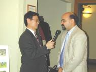 另外,桔县县议员兼中城市(City of Middletown )思洛尔图书馆(Middletown Thrall Library)馆长杰夫力.伯克曼(Jeffery D. Berkman)先生也参加了庆典仪式。伯克曼先生仔细观看了法轮大法图片展,并接受了放光明电视台记者的采访。当地报纸的记者采访了庆祝仪式,并认真学习了法轮功功法。