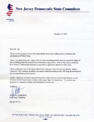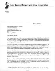 新泽西民主党州委员会主席罗伯兹致法轮功学员的信