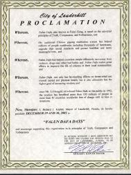 佛罗里达州劳德希尔市宣布“法轮大法日”