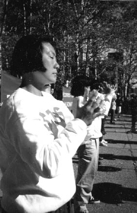 这四名妇女,朱颖,李智丽,杨东东和刘静芝计划在中国领事馆结束新闻发布会后,向联合国秘书长柯菲.安南递交加拿大人和美国人收集的数百份(注:应为10万份)签名,呼吁立即制止中共当局对法轮功修炼者犯下的野蛮暴行。