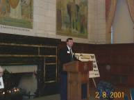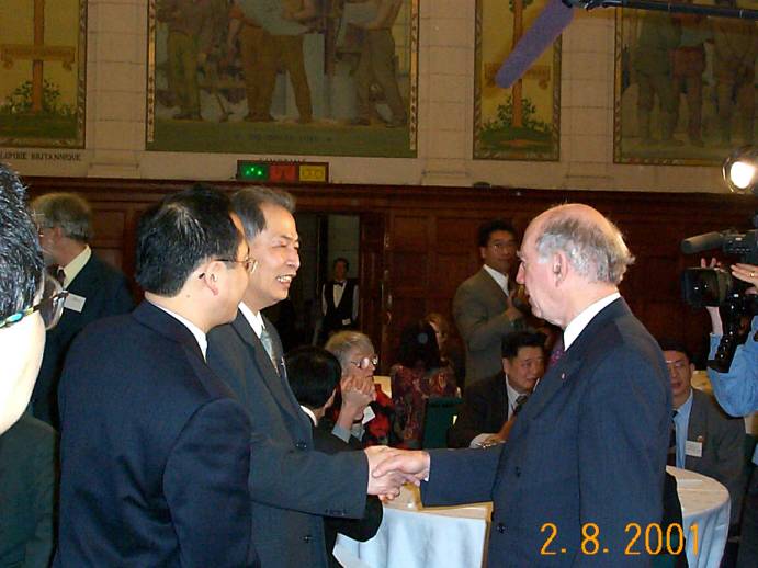 一名侨领高兴地宣布由80多个团体组成的“法轮功之友”即将正式成立的消息。