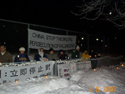 大法弟子们手捧着蜡烛在白雪皑皑的冰天雪地中静静地站立,悼念被迫害致死的同修。天籁之声都仿佛近在耳边,星星点点的烛光在雪地里闪烁,是那样的明亮和圣洁。大家在零下20来度的雪地里站立着一点都不畏惧寒冷,来采访这次活动的记者都不禁感动。一个学员说:“虽然看起来在我们这层空间是一件小事,可是在另外空间里会是多么的惊天动地和殊胜,这就是助师世间行。”现在越来越多的学员认识到将自己的生命与正法连接在一起的伟大和辉煌。