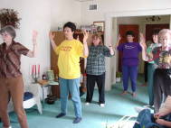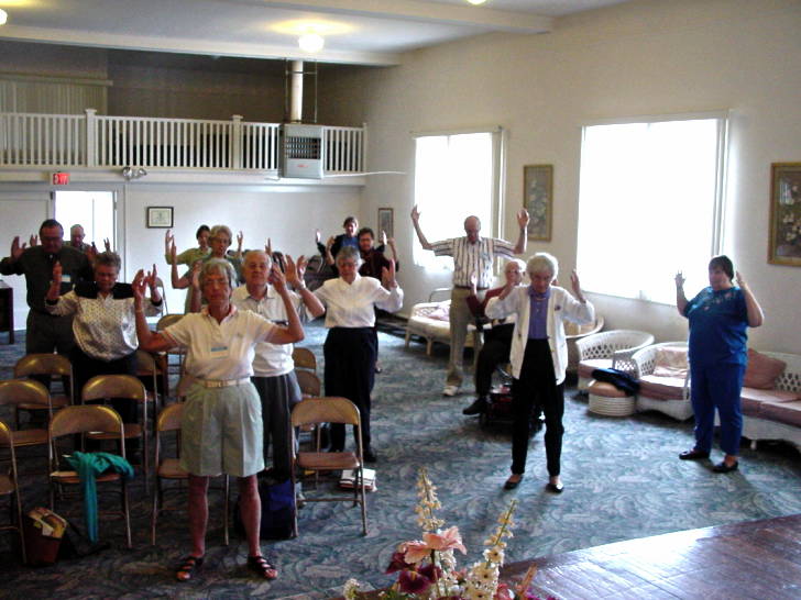 当教完第五套功法之后,师生们与我们进行了热烈的讨论,特别是有关中国镇压法轮功的讨论,他们对专制独裁的中共一贯的做法十分了解和及其厌恶,从六四血腥镇压谈到今天对法轮功的残酷迫害,教授热情赞扬法轮功学员一年多来的和平请愿,比作与印度甘地的非暴力抵抗运动、马丁.路德金的和平运动一样伟大,有学生补充道,就象早期基督徒为真理而抗争。