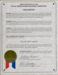 • 加利福尼亚州福雷司诺市宣布法轮大法周
