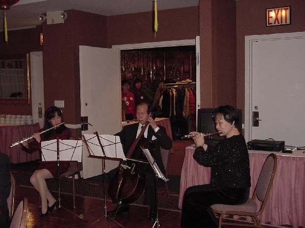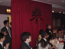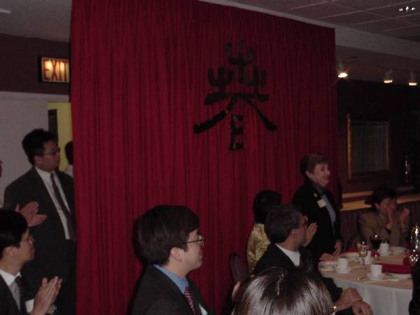 两位晚宴的主持人在致词中对”春节“这个中国古老的传统节日作了简短介绍,同时讲述了江氏下令春节期间在全国范围内抓捕法轮功学员,使千万个家庭在这样一个举国同乐的时刻妻离子散。加拿大张昆仑教授被释放就是国际社会与善良民众支持正义反对邪恶的最好例证。纽约地区的法轮大法学员也因当地各级政府给予的支持倍受鼓舞。另外,作为社会中的一份子,作为议员的选民,学员们感到有责任提醒政府官员,他们有可能因为褒奖法轮大法而受到来自驻美中国领馆的骚扰,甚至恐吓。随后,学员们播放了圣迪市(Stantee)市长不受加州中国驻美领馆的干扰,颁发褒奖给当地大法学员的新闻报道。两分钟的新闻立场鲜明,诙谐有趣,引起客人们及学员的阵阵笑声。