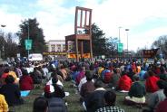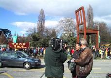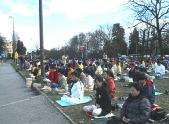 今天上午的天气很好。三月的日内瓦仍是春寒料峭,但灿烂的阳光给大家带来了暖意。与去年的炼功请愿活动相比,今年请愿的规模更加壮观。尤其引人注目的是,西人学员比去年有明显的增加。