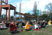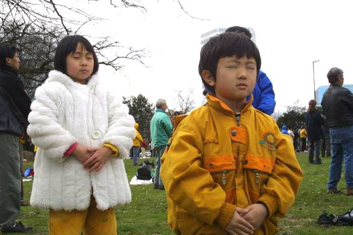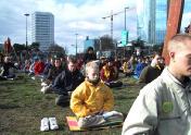 一千多位大法弟子在安祥的炼功音乐中连续将法轮功五套功法演炼了两遍。炼功请愿活动于中午12点圆满结束。下午,大家将分头在日内瓦五个公园炼功洪法。