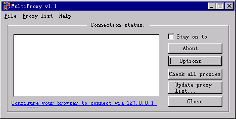 在介绍MultiProxy之前,首先简单介绍一下代理服务器的原理及作用。与直接连接到Internet相比,使用代理服务器有三个主要的优点:一是能突破网络封锁,让用户可以毫无阻碍地真正畅游Internet的任一角落,二是能保护上网用户的IP地址,从而保障上网安全;三是能显著提高网络浏览速度。但是这些优势只能在一种理想化的条件下才能实现,为什么这么说呢?我们都知道,代理服务器的原理是在客户机(用户上网的计算机)和远程服务器(如用户想访问远端WWW服务器)之间架设一个“中转站”,当客户机向远程服务器提出服务要求后,代理服务器首先截取用户的请求,然后代理服务器将服务请求转交远程服务器,从而实现客户机和远程服务器之间的联系。很显然,使用代理服务器后远端服务器包括其它用户只能探测到代理服务器的IP地址而不是用户的IP地址,这就实现了隐藏用户IP地址的目的,保障了用户上网安全。但这样的结果必须有一个理想的前提,即代理服务器必须是可靠的。因为虽然远端服务器探测不到用户的IP地址,但从代理服务器上能很容易地得到用户的真正IP地址,尤其如果代理服务器是中国大陆某些部门下属的202.97.XX.XX的假代理的话,后果将不堪设想。其次使用代理服务器可以加快用户的浏览速度的原因是因为如果很多用户使用的是同一个代理服务器的话,这些用户访问过的内容都会存储在代理服务器的缓冲区中(一般代理服务器的缓冲区会相当的大),其后当有人再浏览这些内容时,这些内容可以直接从代理服务器的缓冲区中获取而不必花费更多的时间去连接远程服务器,这就无疑提高了用户的访问速度。但事实是一般情况下代理服务器的反应速度并不比直接连接远程服务器的速度要快,特别是当使用国外的代理服务器连国内的WWW服务器时(一般用国外的代理服务器连国外站点速度确实有所提高,而且不会出现“该页无法显示”的提示)。