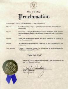 肯塔基州路易斯维尔市宣布“法轮大法周”