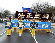 整个游行在中午12点左右结束。随后学员们分散到首都各地去洪法、炼功、交流以及散发讲清真象的材料等等。许多人也将参加第二天的每月一次的华盛顿学员大炼功活动。