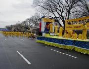 天空中一直在下着雨,有的学员猜测也许今年看游行的游客会少。可是随着大法横幅一面面的展开、大法弟子们一个个的各就各位,雨渐渐地小了,在游行开始的时候,雨竟然完全停止了。
