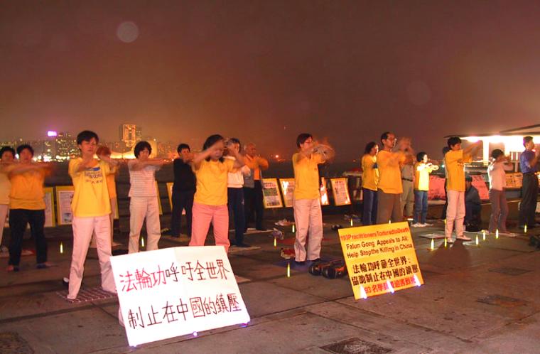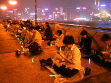【明慧网2001年4月18日】 4月17日晚,香港大法弟子与全世界其他国家的大法弟子遥相呼应,在本地以烛光晚会的形式悼念在中国大陆被残酷迫害致死的法轮功学员,并呼吁国际社会以及全世界善良的人们关注并制止发生在中国的这场邪恶镇压。4月18日,在日内瓦举行的本届联合国人权委员会将开始就中国侵犯人权的状况进行投票。