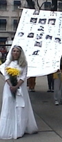 别处一名不肯就范的女子,公安扯着她的头发,猛力将她拖走。一对男女手抱一名婴孩在广场上呼喊支持法轮功的口号,公安连婴孩都不放过,他们从男子手上抢过婴孩,然后粗暴地将他与女伴一并拉上公安车,而婴孩也被带上车。