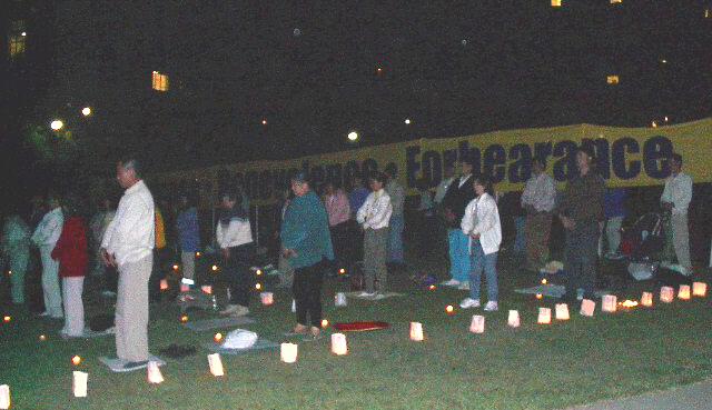【明慧网2001年4月27日】 法轮功学员在中共驻纽约总领事馆前守夜练功——一群纽约法轮功学员昨晚六时起,在曼哈坦中共驻纽约总领事馆前,举行连续二十五小时接力守夜练功,纪念 一九九九年四月二十五日北京中南海法轮功学员大规模请愿活动两周年。