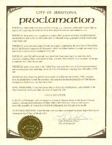 加利福尼亚州赛巴斯特波尔市宣布“法轮大法周”