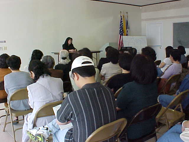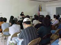 一位白发苍苍的人士站起来发言,他说:"我练太极十六年,然后又练喻伽功二十年,我并不满意;值得庆幸的是在有生之年得到了法轮大法,我得法还不到一个月,我一直在看越语的[转法轮],我感觉非常好。"阮医生继续发言:"法轮功是性命双修功法,不能抱着任何有求之心来学;主要是修炼心性,心性多高,功多高。"她还举了个例子:"当我一出门碰到不顺利事情,别人对我不好时,我忍一忍,事情就化解了。人心的改变,道德的回升,使家庭和睦,社会风尚改变,利己利他利国。"听众听得非常认真。