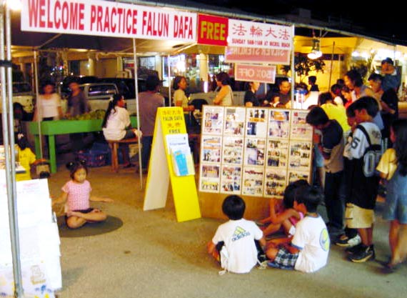 塞班岛是一个旅游圣地,游客有日本人、韩国人、台湾人及大陆同胞等,当地语言以英语为主。当地学员为了做好洪法工作,各种语言都学上几句。开始有时分不清游客是属于那个民族的,会把传单派错,想起来真是有趣。