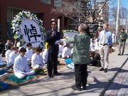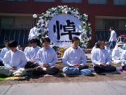 悼念词的结尾中这样写到:今天我们怀着悲痛的心情悼念为真理而献身的中国大陆同修们,你们为坚持真理而舍尽一切的大善大忍的胸怀与境界实践了你们最崇高的誓言,你们用自己的生命与巨大的精神及肉体的承受,唤醒着所有善良人的心。