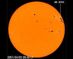 强烈的耀斑发生在太阳的西北翼,过去一星期在那个区域观察到一大片黑子群。这片被称为Noaa 9393的黑子群看上去十分壮观。