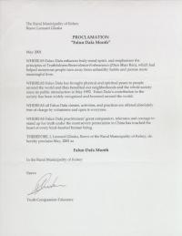 加拿大马尼托巴省弗兰克林镇宣布"法轮大法月"
