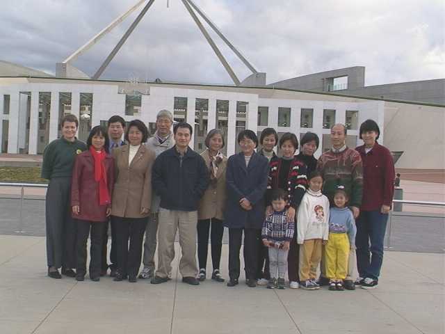 当日下午,《澳洲人报》的记者也闻讯赶到国会大厦,采访被拒入境香港的法轮功学员。(悉尼学员供稿 2001年5月10日)