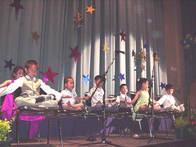 八位小弟子为来宾表演了第一,二,和第五套功法,童真与祥和博得人们阵阵掌声。