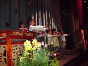 接下来,几位国家级歌唱家,音乐家,著名诗人,等等,纷纷献艺。那位女高音歌唱家的一曲“我爱你,中华”使人泪下。如今中华大地,邪恶横行,令人生起还我河山之感。当人们得知这些一流艺术家也是大法弟子时,惊奇之中对大法多了份了解。