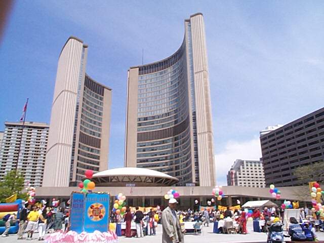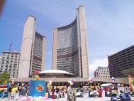 今天的世界法轮大法日本是普天同庆的神圣时刻,怎样把自己得到的无价财富让更多的世人来分享,让他们也能找回真我,获得永远的幸福是每一个法轮功学员想得最多的一个问题。多伦多广大的法轮功修炼人为此特意在这一天,在市政广场举行了庆祝世界法轮大法日及多伦多“真、善、忍”日的大型庆典活动,将环宇欢庆的喜悦带给广大的加拿大民众,让他们在分享我们的平和、真诚、温馨的同时,将真、善、忍的理念植入自己的心灵深处,给他们的未来埋下希望的种子。