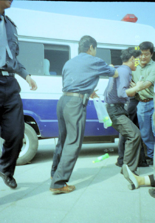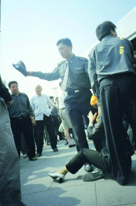 图片报导:2001年4月25日天安门广场警察抓捕大法弟子