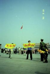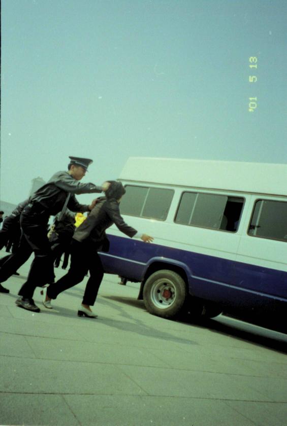 图片:天安门广场的法轮功横幅与警察暴力(5/13/2001)