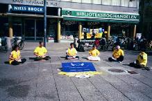下午一时,我们来到闹市区的步行街上的KULTORVET小广场上,挂上大法横幅,世界大法日的标志,气球以及图片,一位学员带来了她经过多日绘制的漂亮的大法展板。还有一位母亲推着婴儿车,带着她出生才几个月的孩子,也赶来参加庆祝活动。