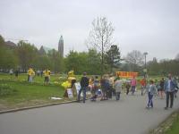 我们准备了印有法轮功字样的气球装点展区并发给小朋友们。我们邀请驻足观看和询问的人们享用饮料和点心。在风和日丽的天气里这真是大受欢迎。我们进行了集体炼功,任何人都可以随时加入和免费学功。在吸引人的大法音乐中,许多人停下来阅读展板,询问功法以及中国的情形等问题。大约15人学炼了功法,许多人坐下来观看学员的演示,欣赏大法音乐的宁静祥和并阅读传单和资料。