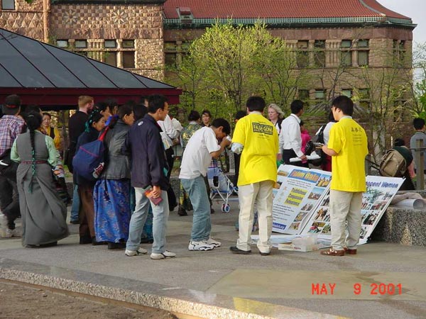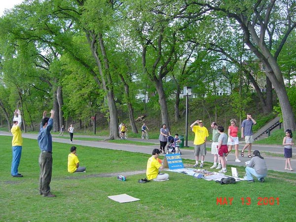 【明慧网2001年5月19日】明州法轮功弟子在圣保罗市和明尼那波利斯市法轮大法周(5/7-5/13)期间及世界法轮大法日,参加和举办了各项洪法活动。期中包括圣保罗市和明尼那波利斯市市中心及公园的洪法活动。达赖喇嘛在明州举办讲座期间的