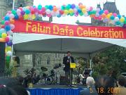 下午,参加中国城游行的学员来到DOWSLAKE公园,在运河边进行小组炼功洪法。在国会山前炼功的学员又来到市中洪法。(待续)