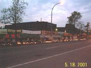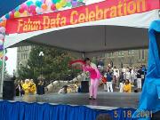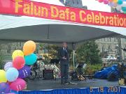 大约十点半,学员们开始从Confederation公园向中国城游行。走在队伍最前面的学员举着各种法轮大法横幅,接着是由二十七面由美国大法学员手工缝制的赤橙黄绿青蓝紫七彩旗队伍。在游行队伍的中间,学员们手里拿着各色印有“法轮大法”和“真善忍”的气球,队伍中间点缀着十八面由台湾学员制作的大型大法锦旗。在游行队伍两侧,学员们面向路人展开了“法轮大法”、“法轮大法在加拿大”、“法正人间”、“庆祝真善忍日”、“行动起来制止在中国的屠杀”等中英文横幅。游行队伍按加拿大育空省、安省、魁省、美国、欧洲、美国堪萨斯州、台湾、加拿大新科斯夏省、澳大利亚、加拿大阿尔伯特省、泰国、加拿大卑诗省和日本的顺序排列。